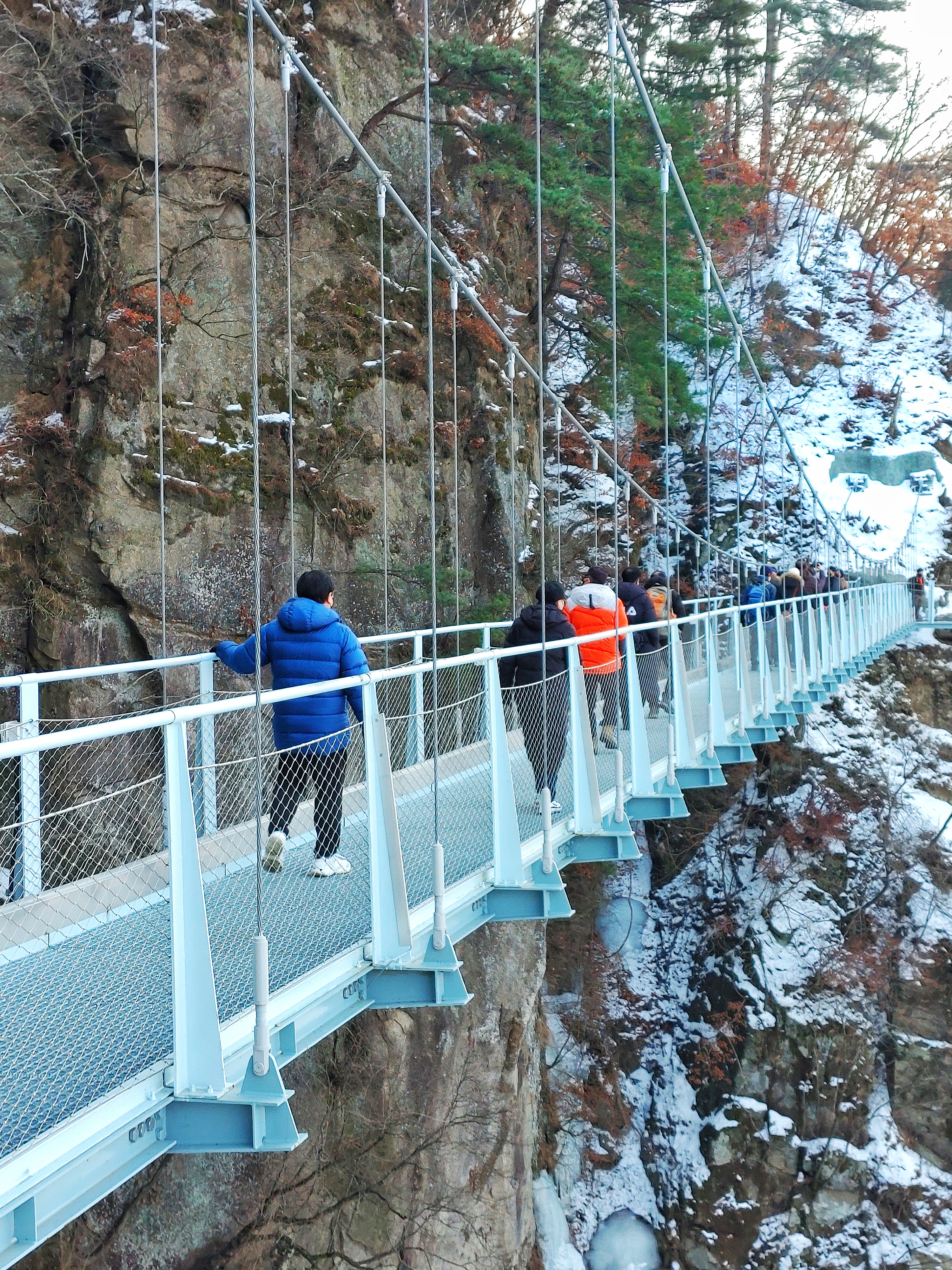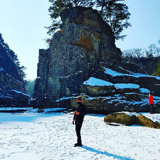 무주구천동계곡 무주까지 왔는데 그 유명한 무주구천동계곡을 둘러보지 않을 수가 없었네요. 덕유산에서 내려와서 우회전해서 10분도 가지 않으니 도착할 수 있었구요. 무주구천동계곡 간판에서 우측길로 들어가면 주차장이 있고요. 차를 주차하고 올라가면 바로 관광안내소가 있어요. 주말에도 근무중이시네요. 수퍼앞이 버스터미널이라는데 버스정류장에 가깝네요. 그 위로 펜션과 몇개의 카페가 늘어서 있어서 저희는 좌측 골목을 통해서 계곡으로 가보았어요. 이 곳이 춥기는 추운 동네인가 보네요. 계곡이 얼어서 젊은 친구들이 바구니 타고 놀고 있네요. 건 너편은 전국 어디나 있는 같은 디자인의 관광단지 입구의 음식점들이 늘어서 있어요. 이 곳 얼어붙어 있는 계곡길이 그 유명한 무주 구천동 계곡인가 약간 아쉬움이 남네요. 뭔가 상..