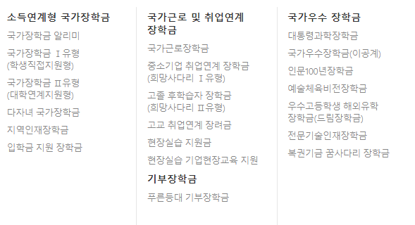 국가장학금 종류