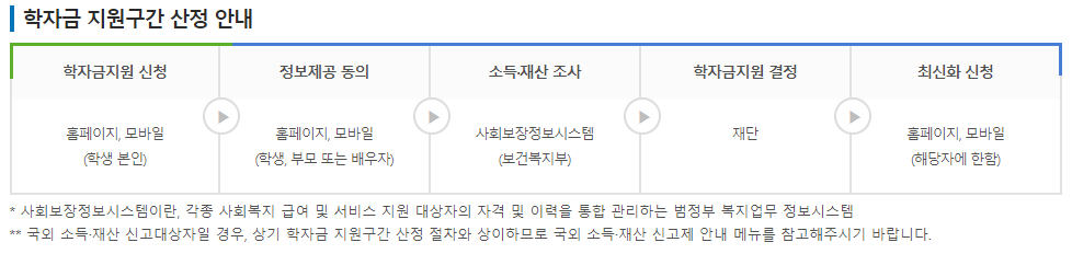 - 해당학기 국가장학금 신청절차(가구원동의, 서류제출)를 완료하여 소득수준이 파악된 학생