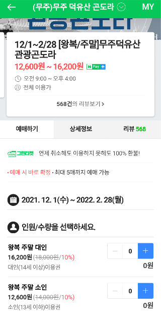 네이버 예약 들어가셔서 무주 덕유산 곤돌라 치시면 바로 예약하고 결제까지 가능하게 되어있습니다.