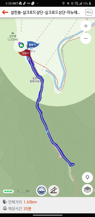 설천봉에서 향적봉까지 왕복 1.7km 로 쉬는 시간 포함해서 한시간 걸렸는데 왕복 40분이면 충분할듯합니다.