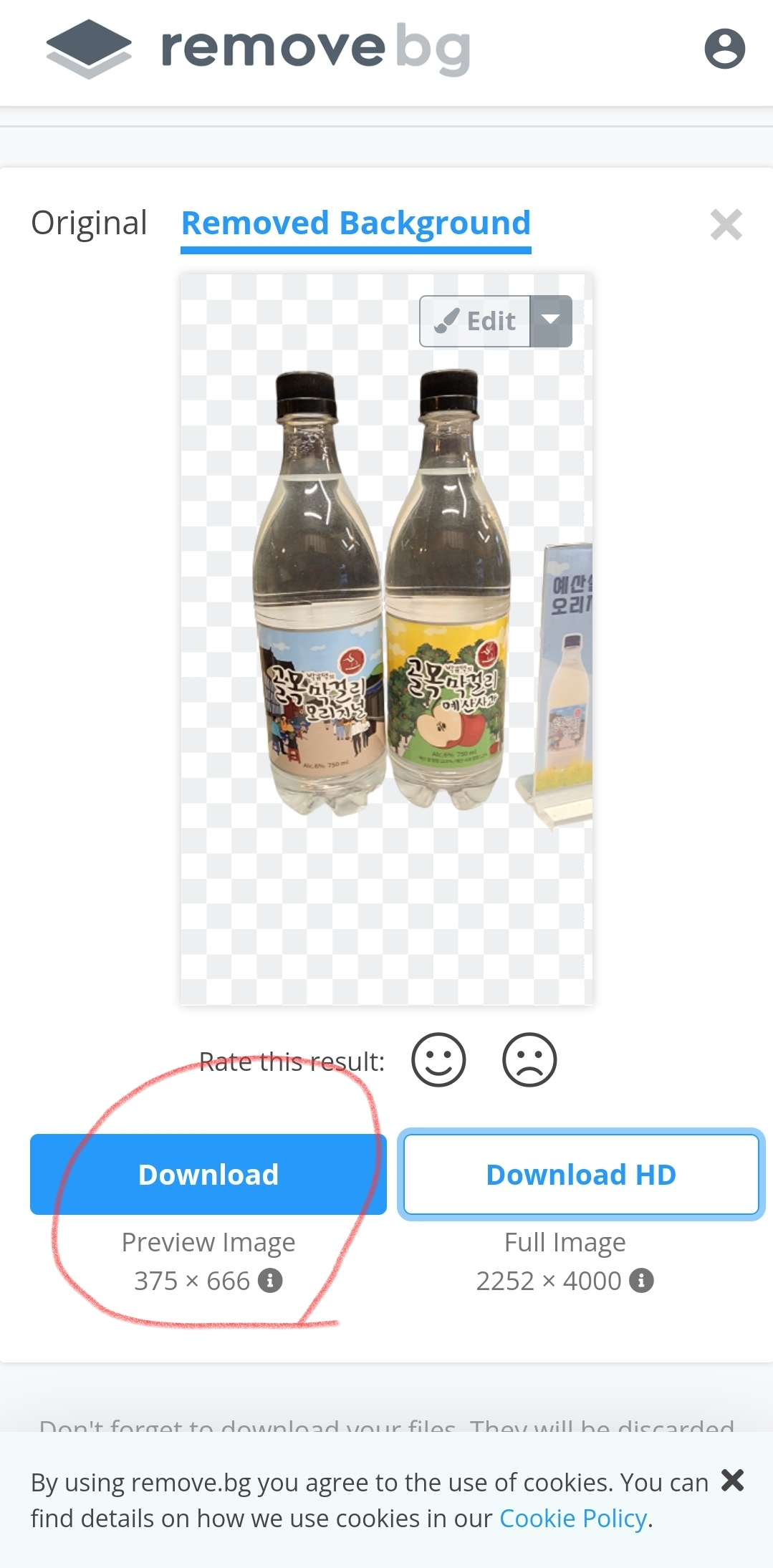배경을 제거하고 싶은 사진을 선택하시면 알아서 자동으로 배경이 제거된 하면이 나옵니다.