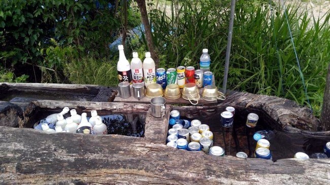 계곡물 옆에서