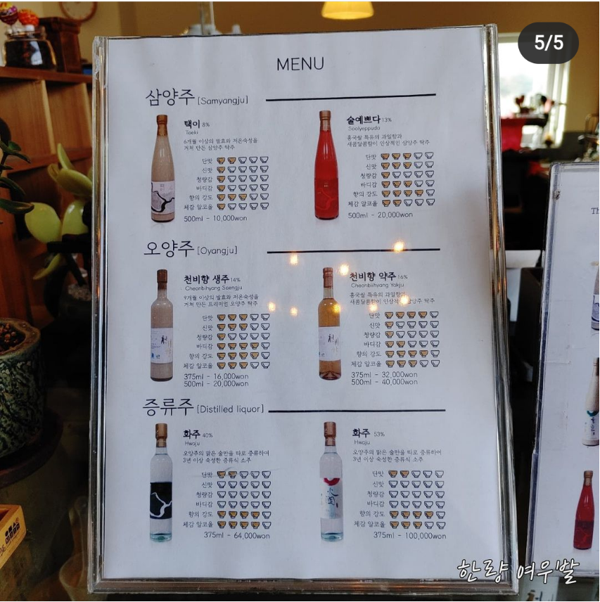 직접 농사지은 쌀로 만드신다네요. 다섯번 발효한 오양주를 만드는 곳이기도 합니다.