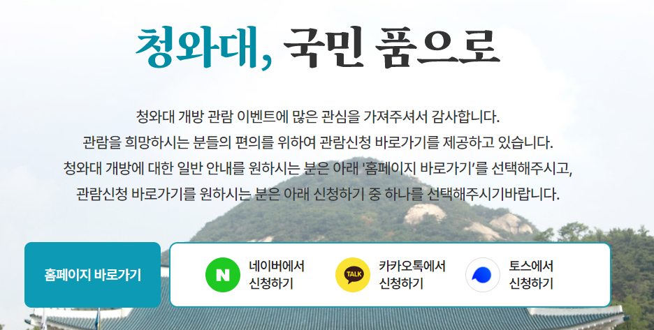 청와대 개방 예약하기 '청와대 국민품으로'